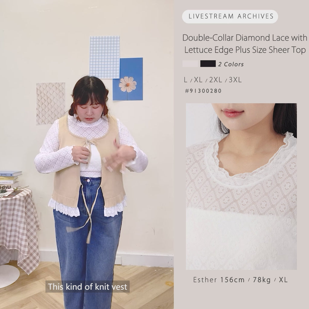 Double-Collar Diamond Lace with Lettuce Edge Plus Size Sheer Top