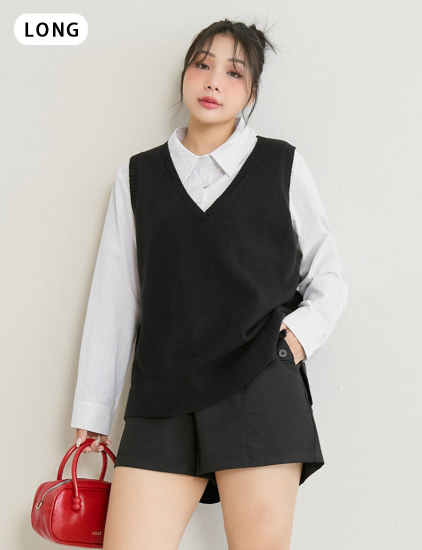 Versatile Multicolor V-Neck Mid-Length Plus Size Knit Vest