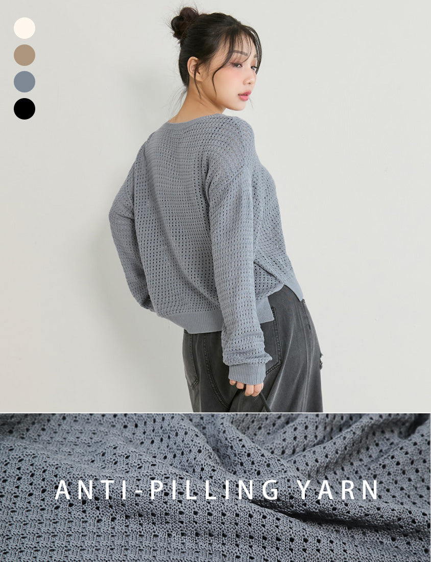 Anti-Pilling V-Neck Eyelet Plus Size Knit Top