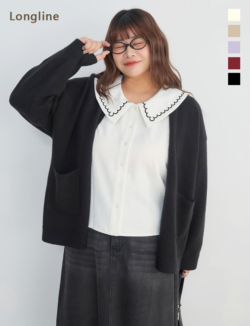 Classic V-Neck Multicolor Longline Plus Size Knit Cardigan