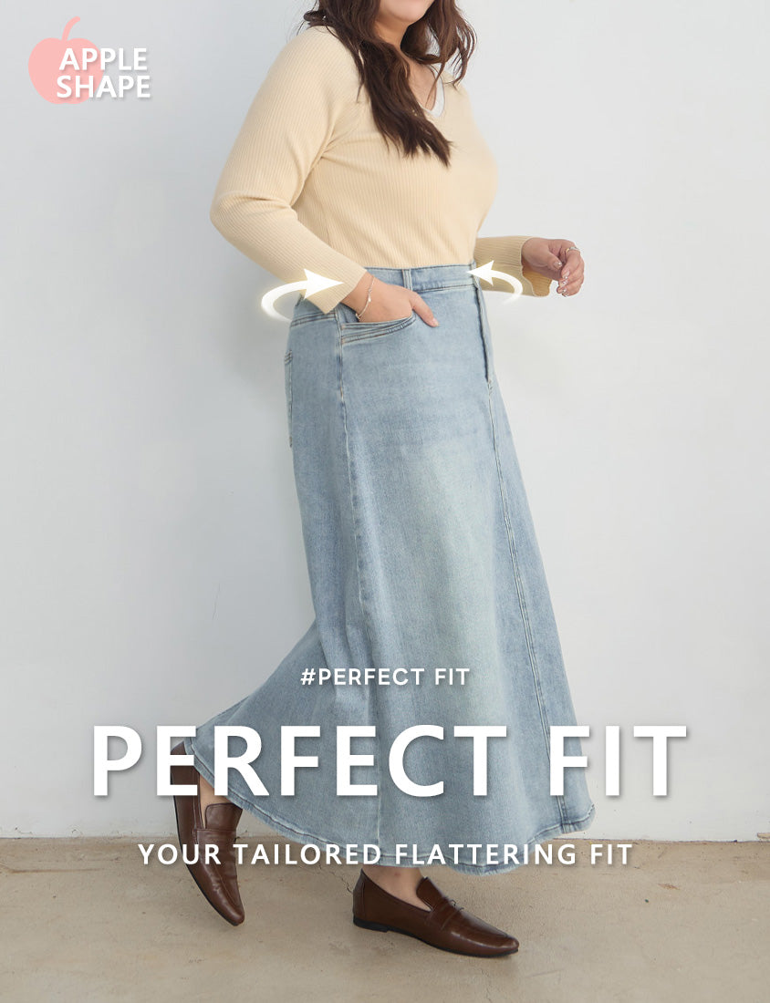 Apple-Shaped Friendly! Perfect Fit Back Slit Plus Size Denim Maxi Skirt