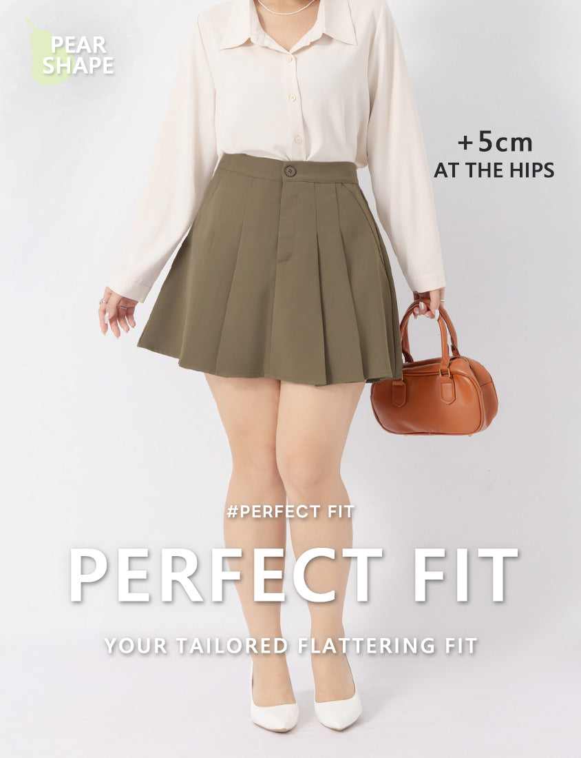 MISS. Apple-Shaped Friendly! Perfect Fit Tailored High Waist Pleated Plus Size Skirt