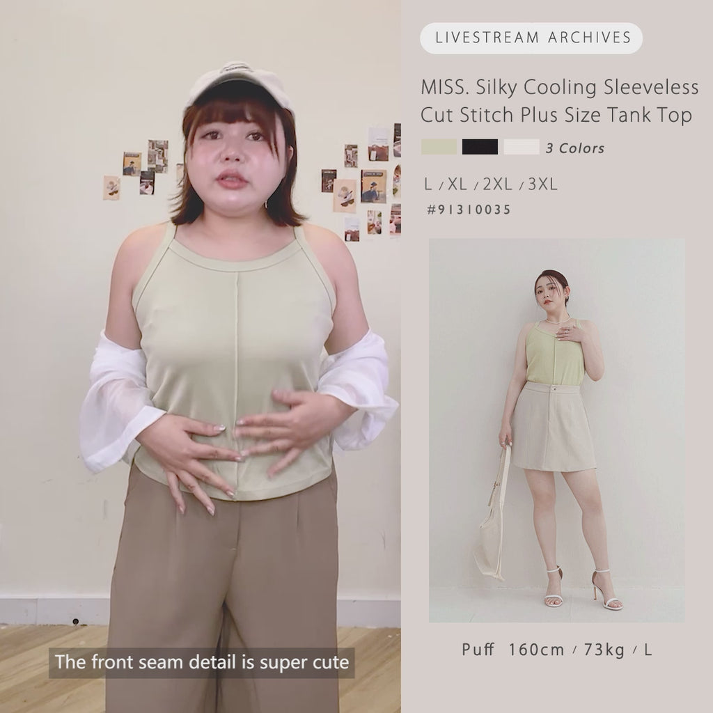 MISS. Silky Cooling Sleeveless Cut Stitch Plus Size Tank Top