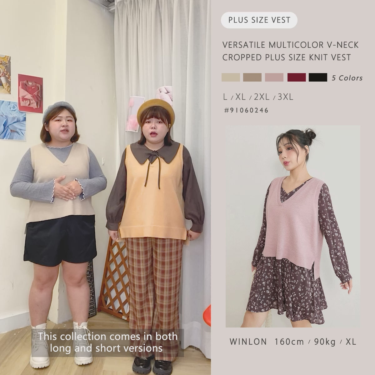 Versatile Multicolor V-Neck Cropped Plus Size Knit Vest