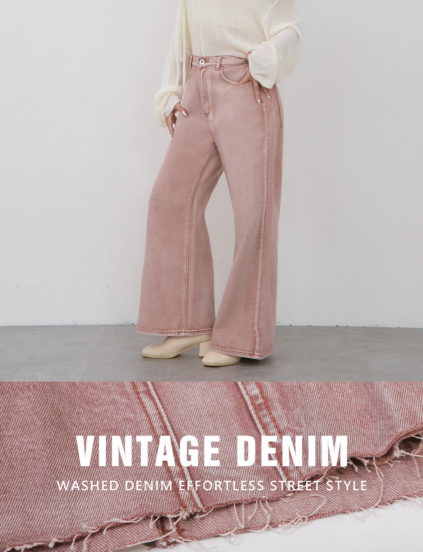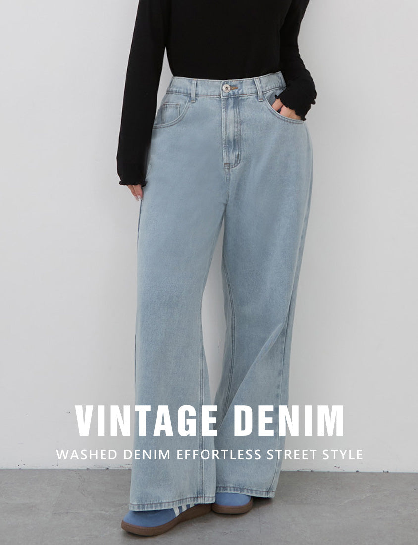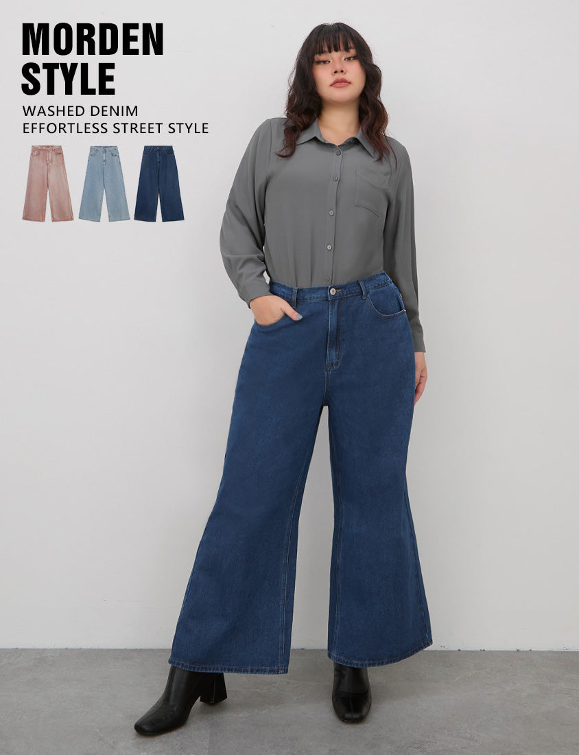 Vintage Washed Elastic Back Waist Plus Size Wide Leg Jeans