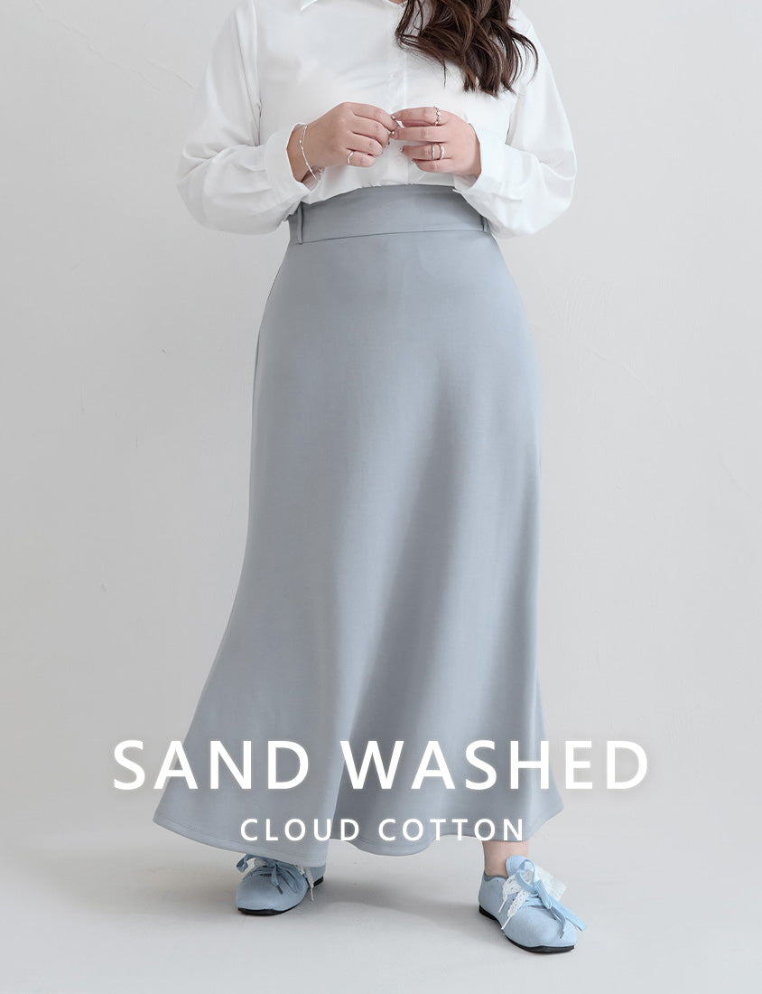 Cloud Cotton Elastic Back Waist Plus Size Mermaid Maxi Skirt