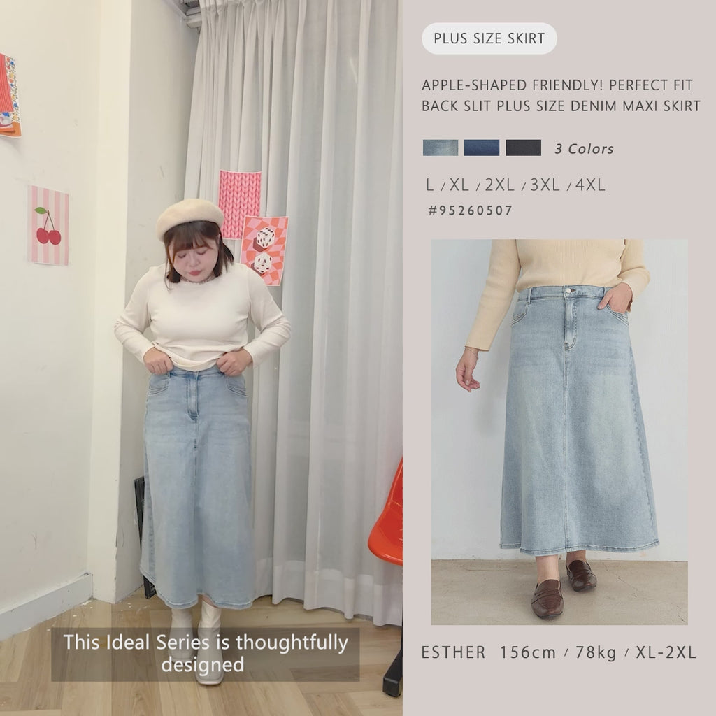 Apple-Shaped Friendly! Perfect Fit Back Slit Plus Size Denim Maxi Skirt